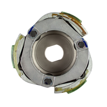 Kompletne sprzęgło odśrodkowe, z dzwonem, korektorem momentu obrotowego, sprężynami, łożyskami itd. Złożone i gotowe do montażu.Pasuje do maxiskuterów produkcji azajtyckiej z silnikami 152QMI 125cm3 i 150cm3 oraz do maxiskuterów Peougeto, SYM, Kymco.