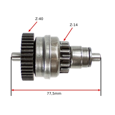 Sprzęgło jendokierunkowe rozrusznika elektrycznego, bendiks, do skuterów dwusuwowych, produkcji azjatyckiej oraz,skuterów z silnikami Minarelli 2T.Wymiary: średnica wewnętrzna: 12,5mm / 13,3mm Dokladne wymiary podane na jednym ze zdjęć.