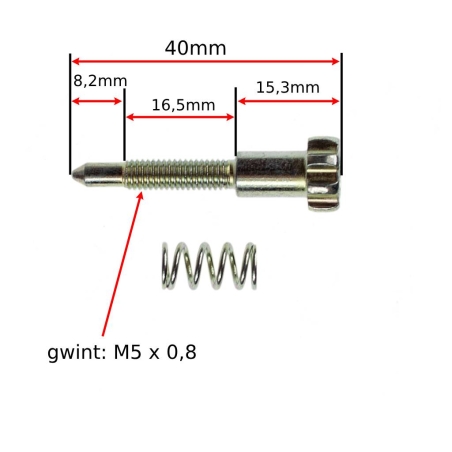 Śruba regulacji powietrza Wymiary: średnica gwintu: 5mm, skok gwintu: 0,5mm, długość całkowita śruby: 20mm długość do początku stożka do końca gwintu: 14mm