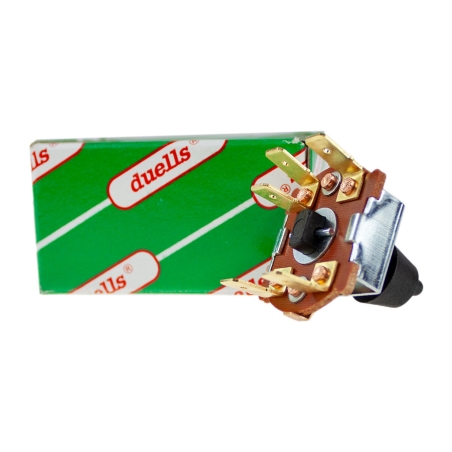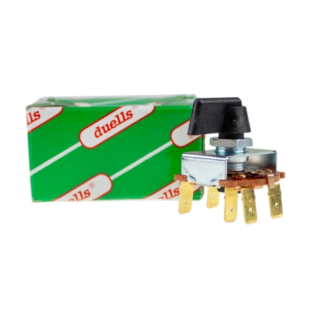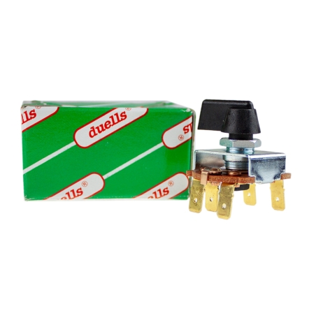 Stacyjka z dźwignią przekręcaną, do reflektora z zewnętrzną ramką metalową do motorowerów Romet Komar, Ogar205, Ogar200, Kadet, Motorynka. Wysokiej jakości produkt Duells.