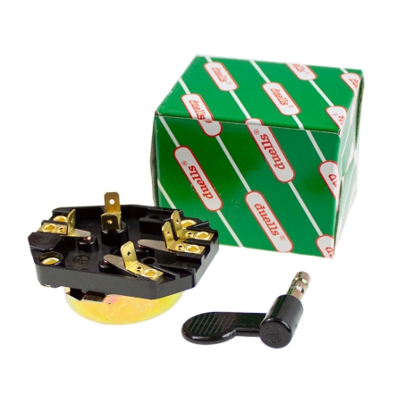 Stacyjka z kluczykiem do motocykli WSK175. Pięć pozycji kluczyka. Dziesięć podłączeń konektorów. Wysokiej jakośći produkt polski.