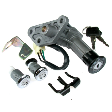 Stacyjka z zestawem zamków i zamykanym korkiem wlewu paliwa, do skuterów CPI. Typ CPO2301Wtyczka: 5 pinów w jednej kostce.Montaż na 2 śrubyPasuje m.in. do skuterów CPI Popcorn.