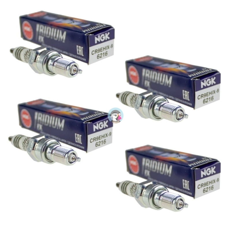 Zestaw 4 sztuk świec zapłonowych, irydowych, NGK CR9EHIX-9, do motocykli Honda.