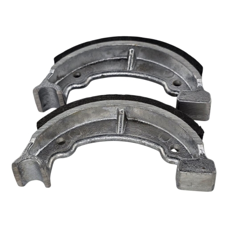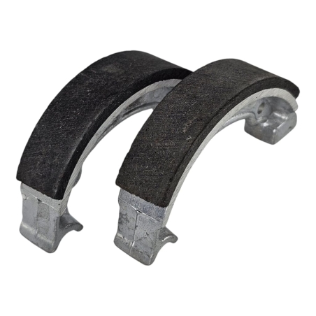 Komplet dwóch szczęk hamulcowych, do motocykli WSK125, WSK175. Okładziny szczęk są nitowane i dodatkowo klejone, zgodnie z oryginalymi szczękami. Cena za parę.