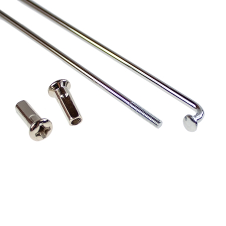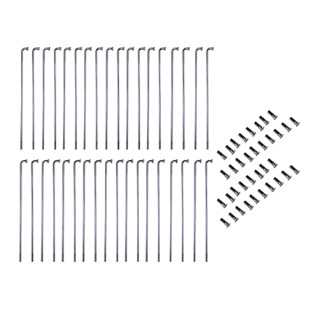 Zestaw szprych, do koła 19 cali do motocykli WFM125 i WSK125 B1, do półbębnów. Zestaw zawiera 18 sztuk szprych z nyplami o długości 185mm i 18 sztuk szprych o długości 220mm