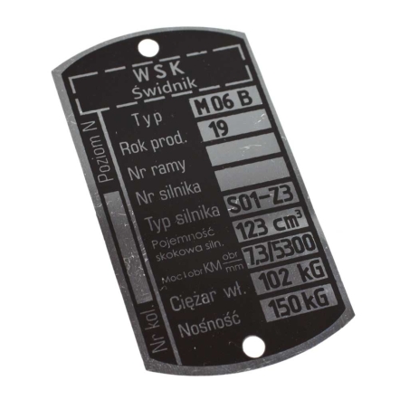 Tabliczka znamionowa do motocykli WSK125 M06B