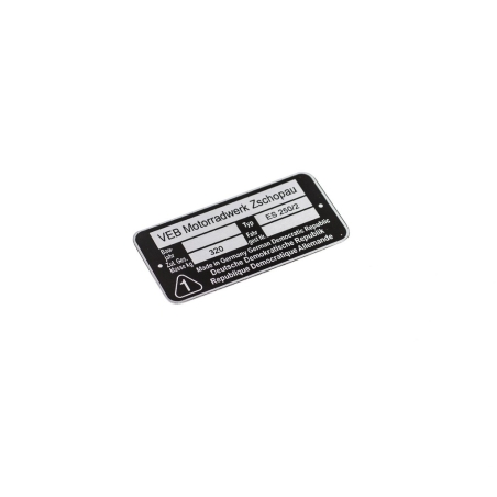 Wysokiej jakości tabliczka znaminowa, bez nabitych numerów roku produkcji oraz numeru ramy, do motocykli MZ ES250/2.