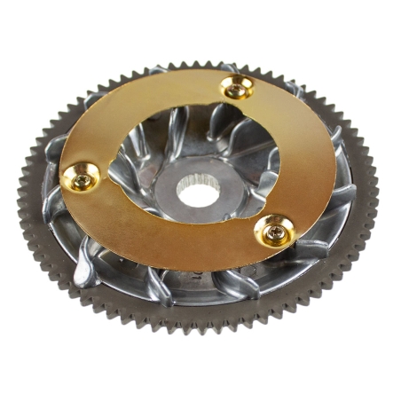 Przeciwtalerz wariatora, aluminiowy, z zębatką do bendiksa rozrusznika elektrycznego, do maxiskuterów Piaggio 125 z silnikami Nie Leader Ilosć zębów do bendiksa: 69 ; średnica zewnętrzna 123mm. Nr OEM 82523R.