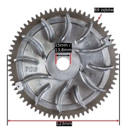 Ilosć zębów do bendiksa: 69 ; średnica zewnętrzna 123mm. Nr OEM 82523R.