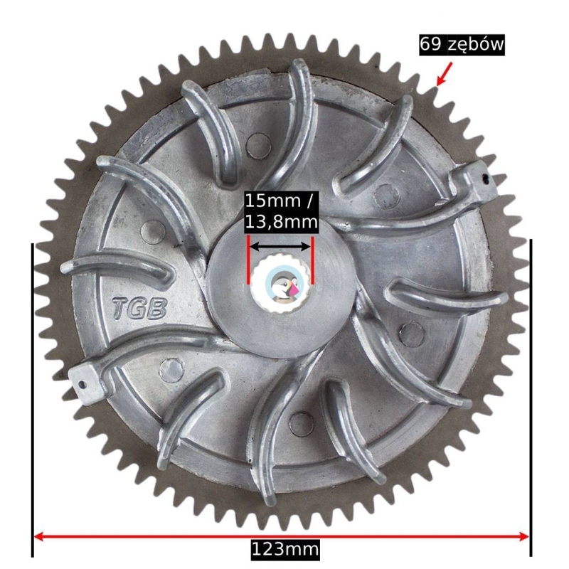 Przeciwtalerz wariatora, aluminiowy, z zębatką do bendiksa rozrusznika elektrycznego, do maxiskuterów Piaggio 125 z silnikami Nie Leader
