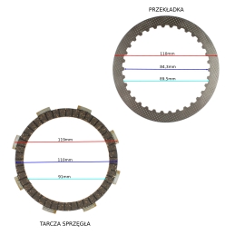 Wysokiej jakości komplet 5 tarcz sprzęgła oraz 4 przekładek.