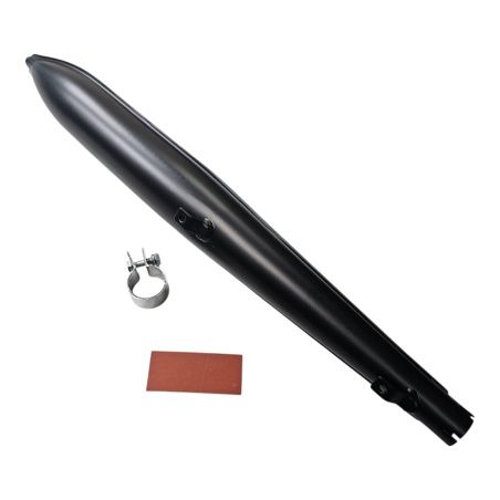 Tłumik do motorowerów Romet Motorynka Pony, czarny mat, montowany do kolanka wydechu na opaskę, która dołączona jest do tłumika.