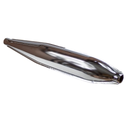 Tłumik chromowany typu cygaro do motocykli WSK125. Tłumik posiada modyfikowaną wewnątrz końcówkę, która nadaje porównywalny dźwięk do oryginalnego wydechu. Do tłumika dołączona jest chromowana opaska.