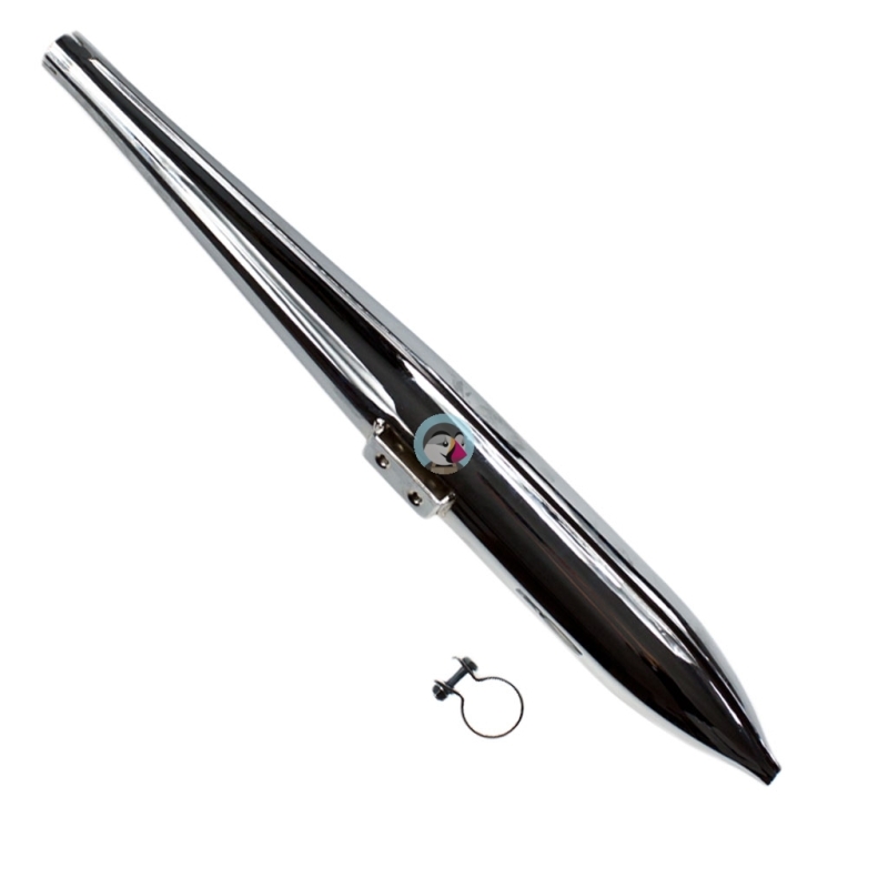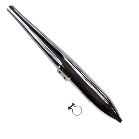 Tłumik chromowany - cygaro, do motocykli WSK125 z obejmą mocującą.Wykonany według wzoru oryginalnego. Chromowany.