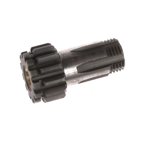 Wałek główny, skrzyni biegów, będący jednocześnie wałkiem zdawczym na zębatkę napędową do motorowerów Romet Komar Ogar205, Kadet, Motorynka, z silnikiem dwubiegowym - drobny frez zebatki zdawczej.