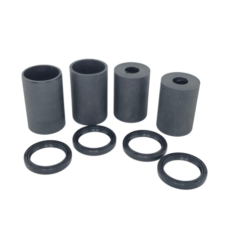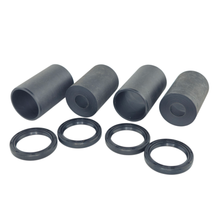 Zestaw czterech tulei przedniego zawieszenia i uszczelniaczy, do motocykli WSK125, WSK175, stary typ. Pasuje do motocykli WSK125 M06 i WSK175 M21 Produkt polski, wysokiej jakości.