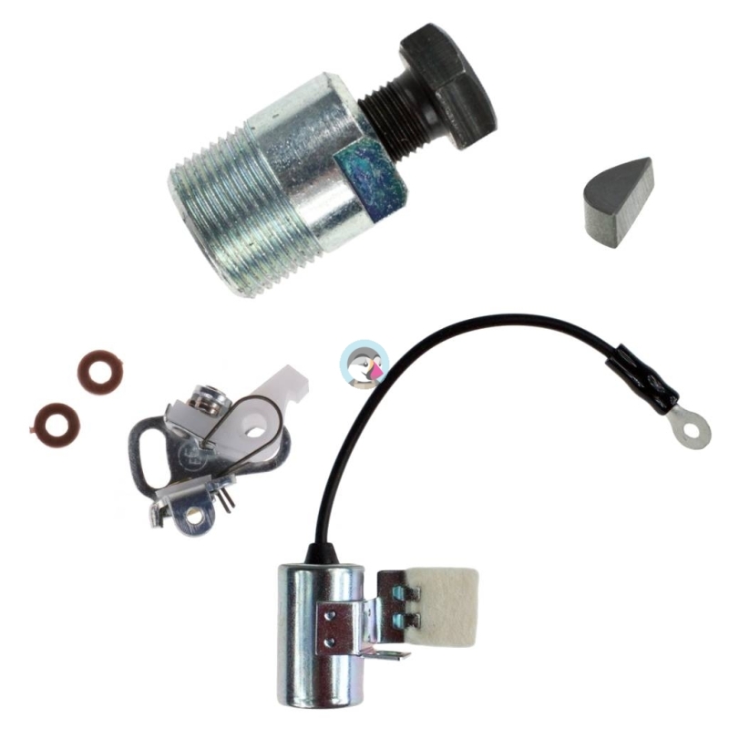 W skład zestawu wchodzi: przerywacz zapłonu, kondensator, ściągacz magneta i klin na wał.