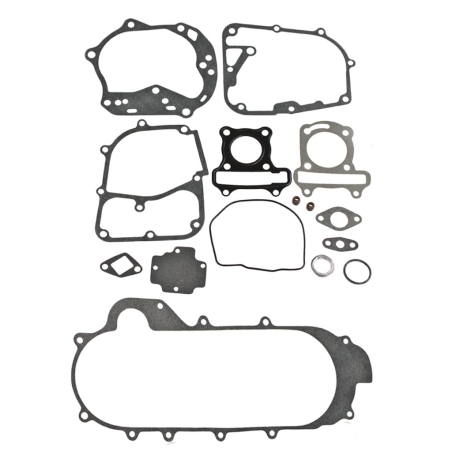 Komplet uszczelek silnika, do skuterów pojemności 50cm3, czterosuwowych 4T z silnikami 139QMB.Uwaga. Uszczelki pasują do silników 139QMB z pokrywą paska o długości 40cm.Powiększony zestaw o uszczelkę gumową łączącą dwa elementy chłodzenia cylindra.