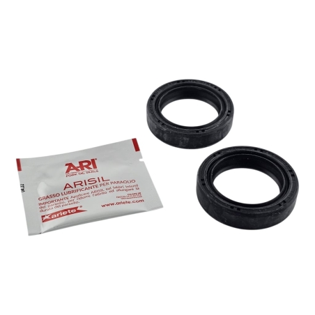 Uszczelniacze olejowe przedniego zawieszenia włoskiego producenta Ariete. Zestaw zawiera dwa uszczelniacze olejowe, po jendym na każdą rurę przedniego zawieszenia.