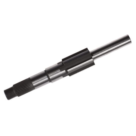 Wałek główny, skrzyni biegów, będący jednocześnie wałkiem zdawczym na zębatkę napędową do motorowerów Romet Komar Ogar205, Kadet, Motorynka, z silnikiem dwubiegowym - drobny frez zebatki zdawczej.