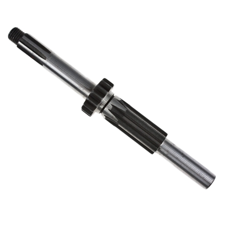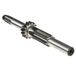 Wałek główny, skrzyni biegów, będący jednocześnie wałkiem zdawczym na zębatkę napędową do motorowerów Romet Komar Ogar205, Kadet, Motorynka, z silnikiem dwubiegowym - drobny frez zebatki zdawczej.