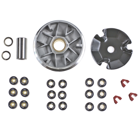 Wariator kompletny, tuningowy, do skuterów czterosuwowych z silnikami GY6 125cm 150cm, montowanych w maxiskuterach produkcji chińskiej.W skład zestawu wchodzą: wariator tuningowy, rolki wariatora, talerz wariatora i tuleja wariatora.