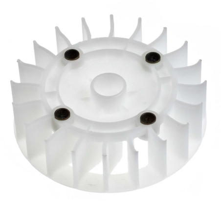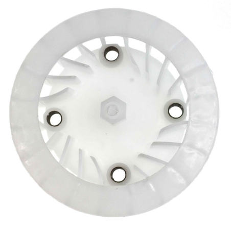 Wentylator wariatora, do skuterów Piaggio Gilera 50cm3.Nowy typ, montowany w skuterach z silnikami Piaggio po 1998 roku.element charakterystyczny: wytłoczenie na cztery wypustki do zabieraka startera nożnego.