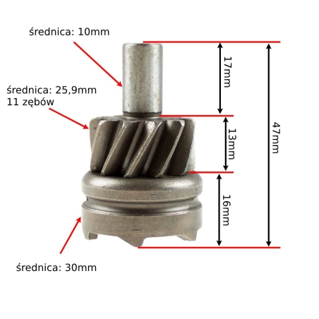 Zębatka atakująca startera nożnego, do maxiskuterów Aprilia, Benelli, Cagiva, Derbi, Italjet, Peugeot, Piaggio, Vespa, czterosuwowych 4T, o pojemności 125cm3 150cm3 ( Dokładna lista modeli poniżej )