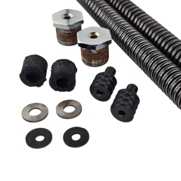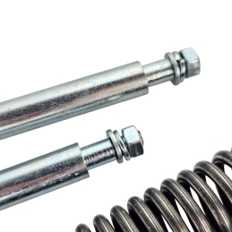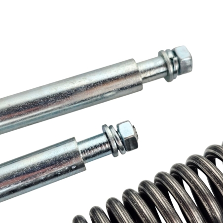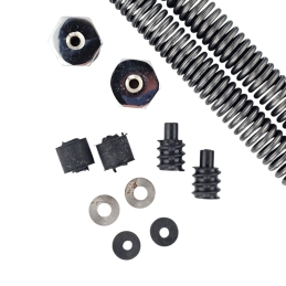 Kompletny zestaw regeneracyjny na dwa teleskopy przednie z olejem Amortyzol, do motocykli WSK125 WSK175. W skład zestawu wchodzą: dwie sprężyny, olej, 4 uszczelniacze, 4 tuleje - 2 ślizgowe i 2 prowadzące. Zetsaw do starszych zawieszeń WSK.