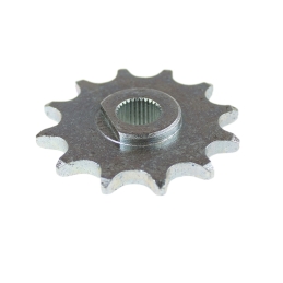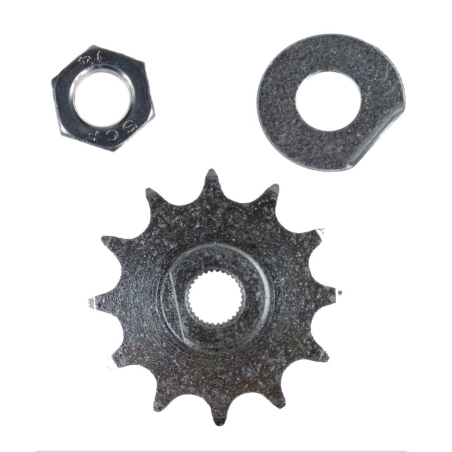Zestaw - zębatka napędowa przednia 12 zębów, zabezpieczenie nakrętki i nakrętka wałka zdawczego, do motorowerów Romet z okrągłym silnikiem S38, produkcji polskiej, ocynkowana. Wysoka jakość produktu, zgodna z oryginałem. Posiada podtoczenia z obu stron zebatki - jedno pod zabezpieczenie, drugie jako dystans (widoczne na zdjeciach).