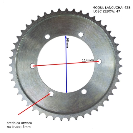 Zębatka tylna. JT Sprockets. Ilość zębów: 49Wymiary: A - średnica na otworach 146mm ; B - średnica wewnętrzna 126mm ; C - średnica otworu śruby 18,5mm ; D - ilość śrub 6Moduł łańcucha: 428