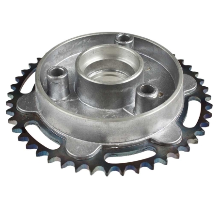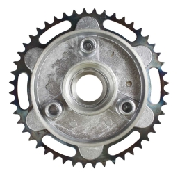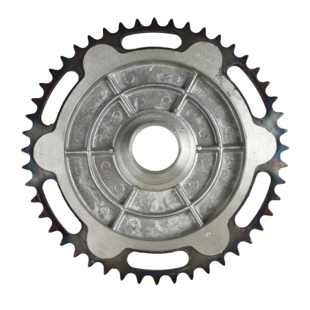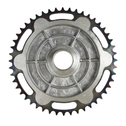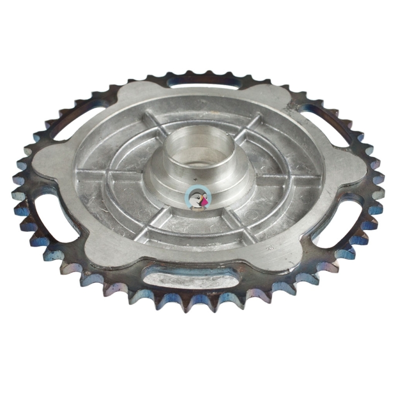 Zębatka napędowa, tylna, do motorowerów produkcji azjatyckiej.Wymiary: średnica wewnętrzna: 64mm ; rozstaw śrub: 80mm ; średnica otworu na śrubę: 9,9mm ; ilość śrub montażowych: 4 ; moduł łańcucha 428 ; ilość zębów: 46 - Kinroad PY-5, RM Motor PY-5.