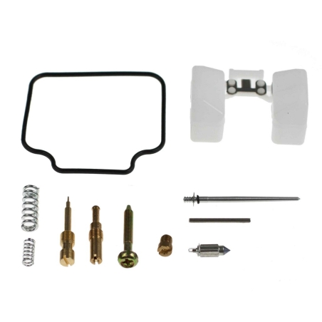 Zestaw naprawczy gaźnika Ikov do motocykli Jawa TS350. W skład zestawu wchodzą: pływak, uszczelka komory pływakowej, uszczelka pokrywy przepustnicy, sprężyna przepustnicy, zawór iglicowy,iglica przepustnicy, zapinka iglicy, dysze.