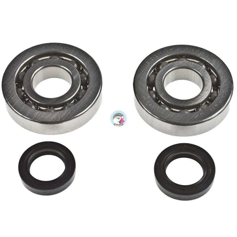 Zestaw łożysk na wał NTN, oraz uszczelniaczy, do skuterów Peugeot z cylindrami pionowymi Vertical, chłodzonymi powietrzem lub cieczą.UWAGA!! Zestaw nie pasuje do skuterów Peugeot Speedfight WRC!Wysokiej jakości zestaw portugalskiej filrmy Jasil.