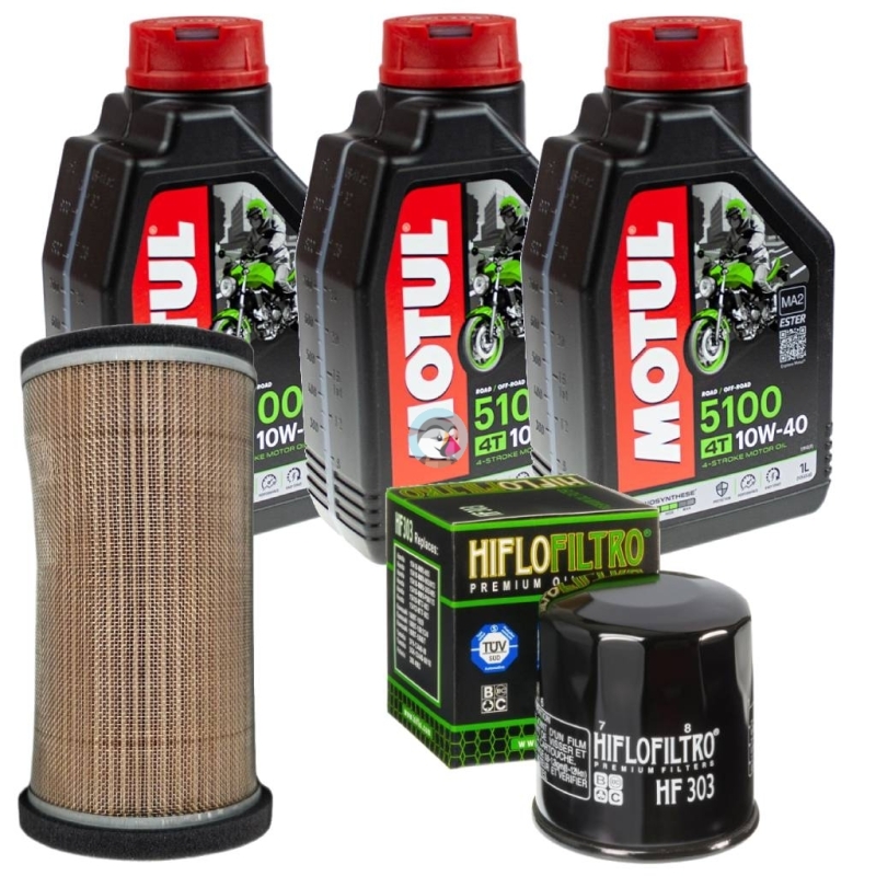 Zestaw filtra oleju wysokiej klasy producenta filtrów HifloFiltro HF138, z filtrem powietreza, filtrem paliwa 8mm, wraz z jednym z najlepszych olejów Motul 5100 10W-40. Taki zestaw to najlepsza jakość części zamienych dla Twojego motocykla, które zapewnią Ci bezawaryjną pracę i doskonałe właściwości smarne dla silnika i bezszelestną pracę skrzyni biegów.